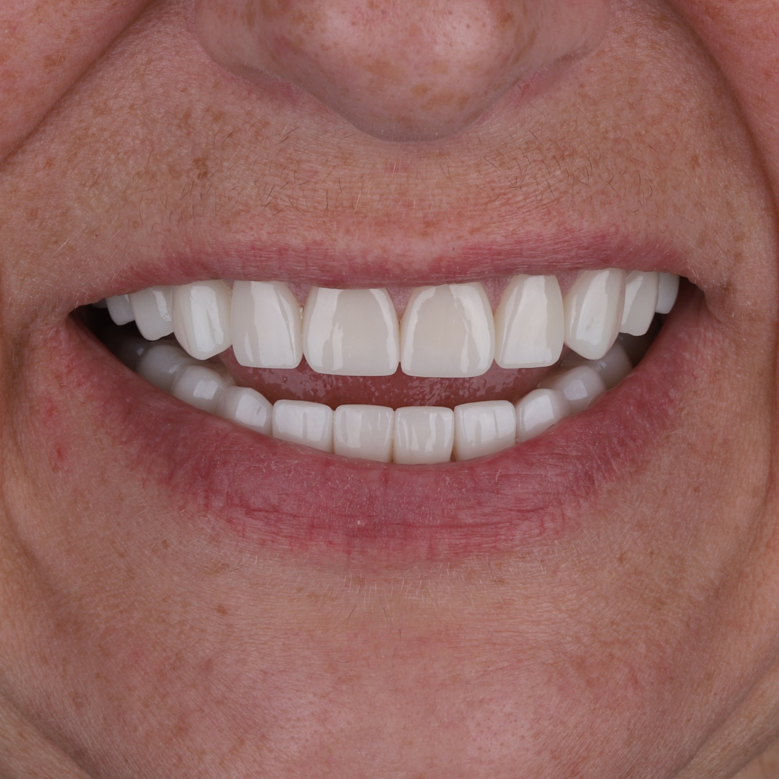 Complete smile design with crowns and/or veneers, customised to your face shape and expectations.